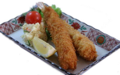 食べごたえたっぷりの大きなエビフライ!衣には生パン粉を使い、カリっと揚げています。